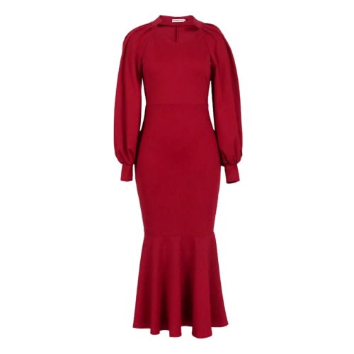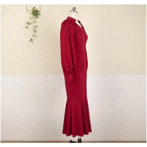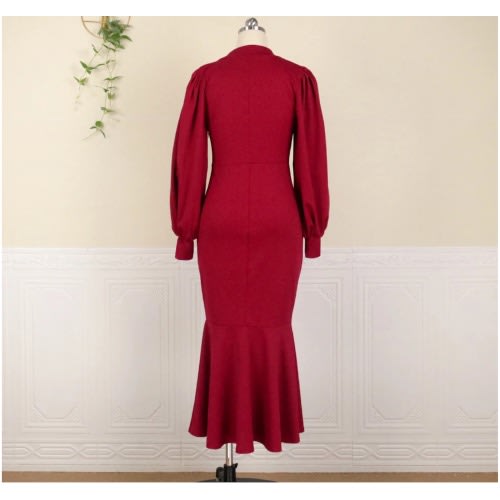 Buy V-neck Lantern Sleeve Evening Gown - Red in Nigeria