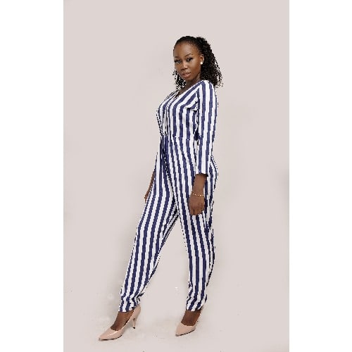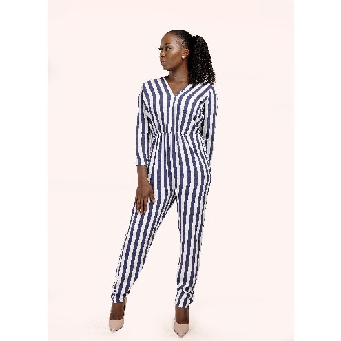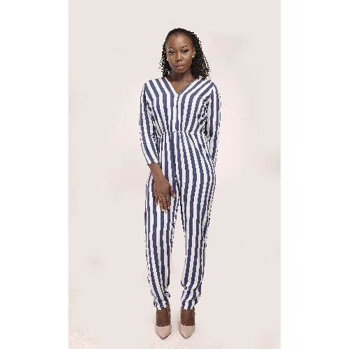 Buy V Neck Strip Jumpsuit in Nigeria