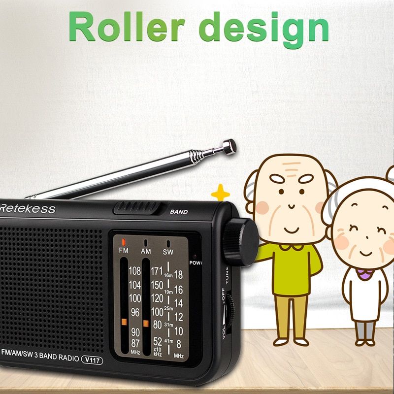 RETEKESS V117 Radio Portable AM FM Small Emergency Transistor Radio Receiver Shortwave Battery Powered Tuner Receiver For Senior