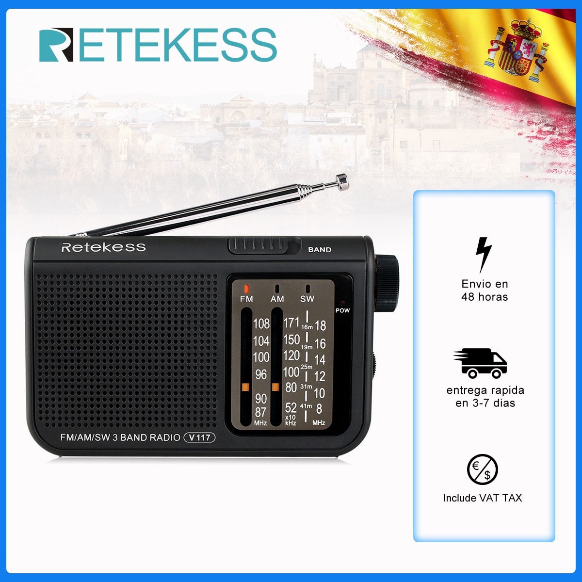 If you want a portable battery operated radio, V117 transistor radio powered by AA battery, this portable model is your best companion when you're doing your laundry, cooking, working at the office or simply listening to the music and news while in bed.this compact radio should be on top of your list .