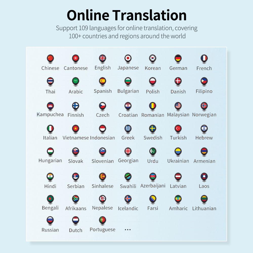 Support 109 languages for online translation, covering 100+ countries and regions around the world.
