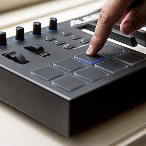 25 full-sized, square-front keys8 velocity-sensitive backlit pads for beat production and clip launching4 assignable knobs and 4 assignable buttons interface with your music softwareOctave Up and Down buttons let you access the full keyboard rangePitch and modulation wheels deliver expressive, creative controlSeamless, visual feedback via illuminated buttons and knobsUSB power and USB-MIDI connectivity for Mac and PCProduction software included: Ableton Live Lite and Xpand! by AIR Music Tech (downloads)