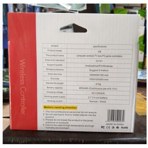 V8 Bluetooth Gaming Controller Grip Game Pad, For Android / iOS / PC / PS3