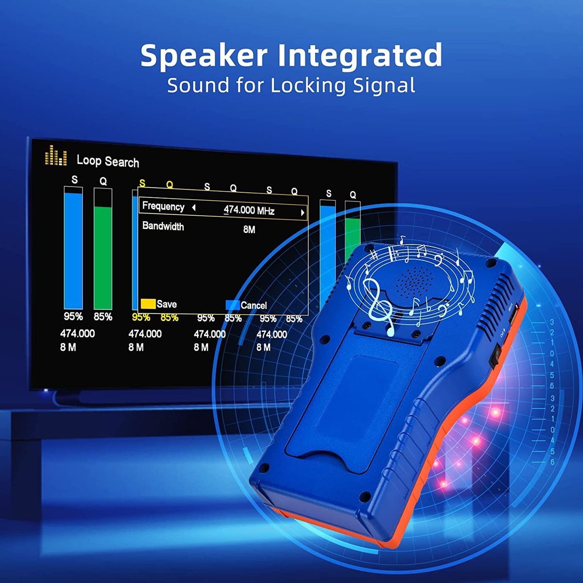 Speaker Integrated, supports sound for locking signal. V8 Finder pro satellite detect device supports Loop Search and scan of Auto, Blind, Manual or NIT. It can auto calculate angle of AZ,EL. With LNB short-circuit protection to protect the tuner from damage.