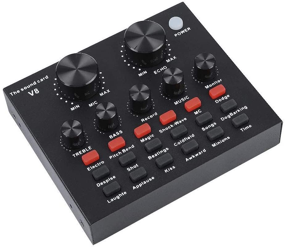 This V8 live sound card is a great gift for those who like to broadcast live, sing, play games or chat.12 electro-acoustic effect optionsPress the "Electrical" button to switch between different electroacoustic effects