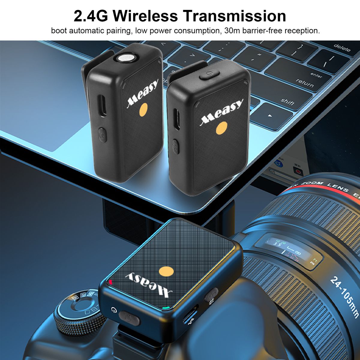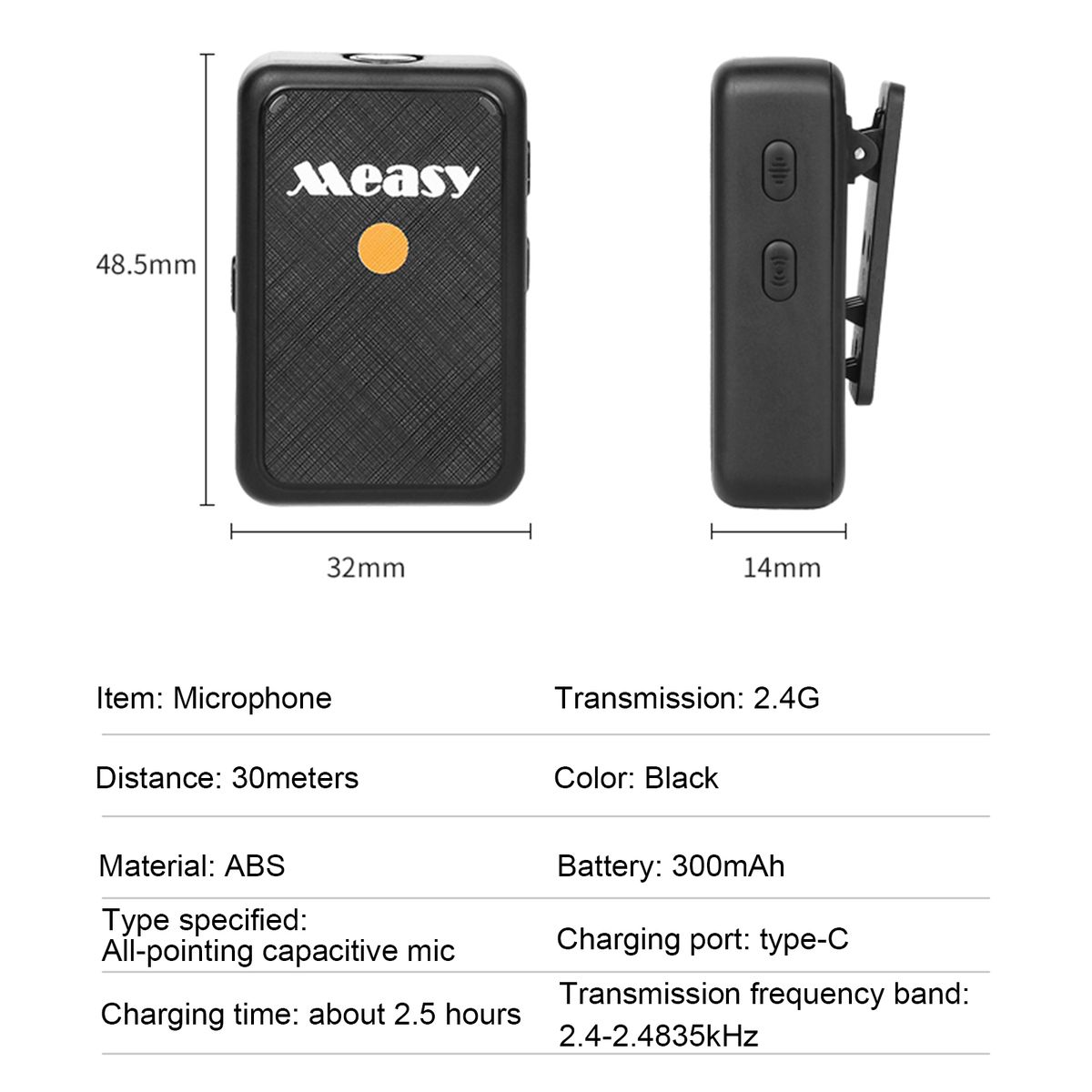Features:【2.4G Wireless Microphone System】This wireless microphone adopts a 2.4G frequency band, features stable signal transmission and a 30m effective range, is not easy to interfere with, ideal for film & vlog recording, live streaming, interview, etc.