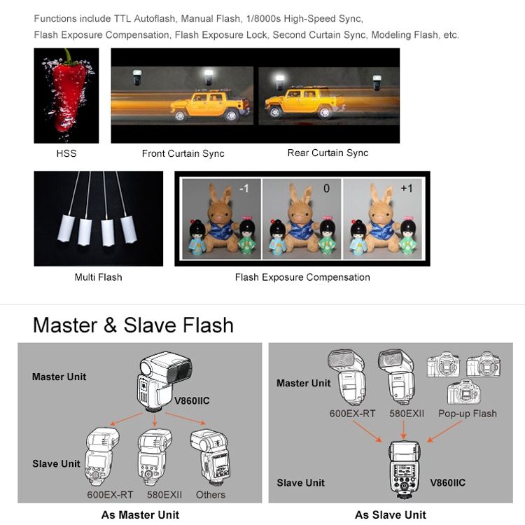 1. For Canon auto flash camera (1. Compatible with DSL)