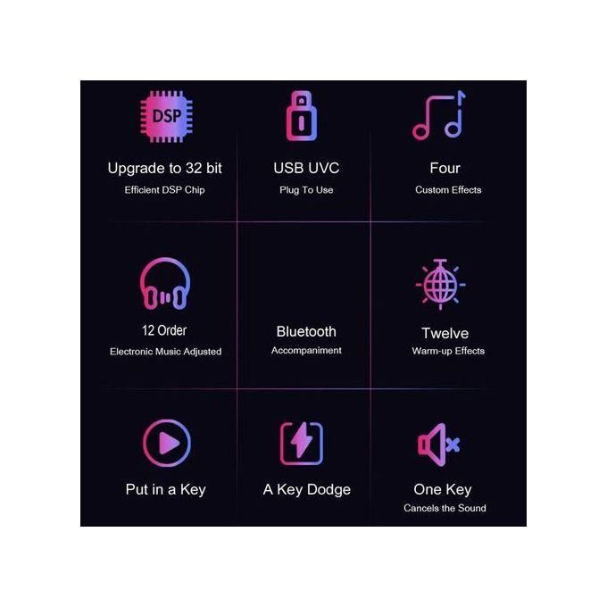 △Introduction▽Adjustment knob design. with 12 kinds of electric sound and 14 warming sound effects. Support original sound elimination. live singing. one button avoidance. real-time monitoring.