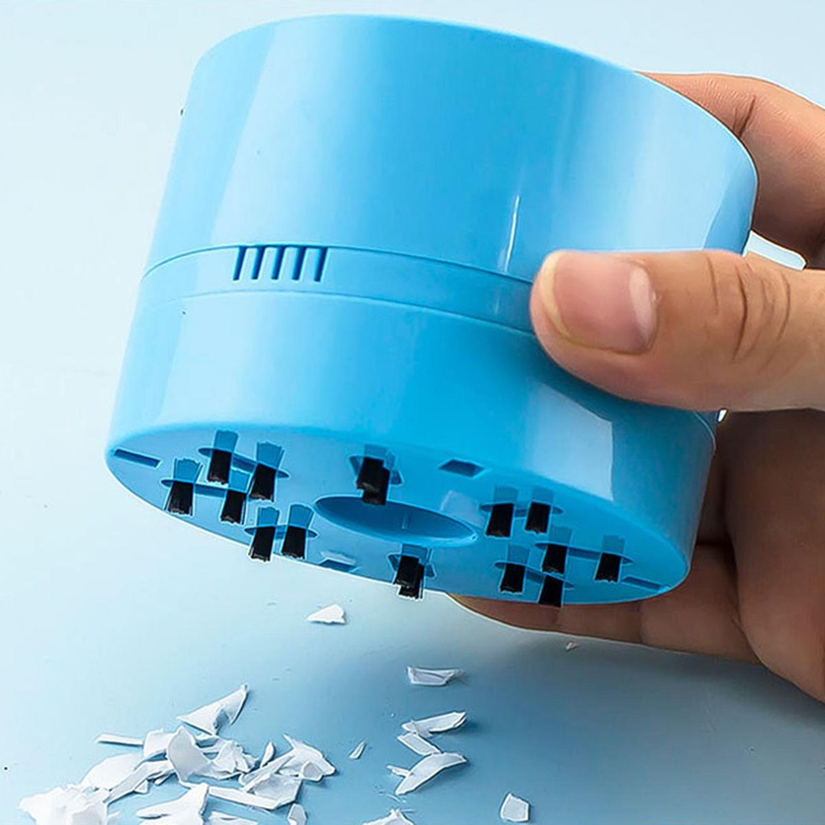 With powerful suction and nylon brushes, this mini vacuum cleaner effectively cleans rubber, paper, snack andcrumbs from your desk.