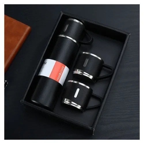 Stainless Steel Vacuum Flask With 3 Cups - Water Bottle 500ml- Gift Set