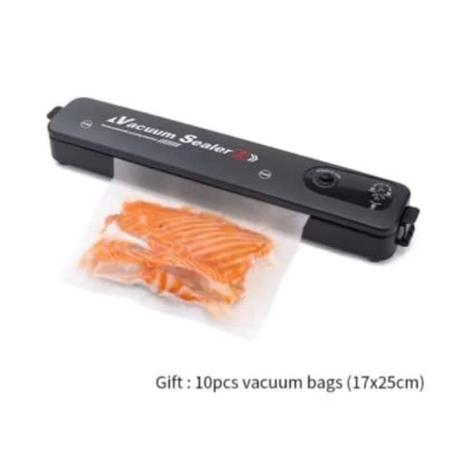 Features:Economical and Practical:Vacuum Food Sealer eliminates freezer burn, reduces spoilage and food waste, and effectively increases food shelf life, making food still fresh and flavorful.Good Healper for Cooking:Cooking and meal preparation becomes easier. Using Sous-Vide cooking method to acheive excellent results when preparing food. It also saves space of your freezer with the airtight bag packaging.Easy to Operate:Do vacuum packing and sealing with one simple press, sealing food in seconds, offering you a quick, easy and inexpensive way of preserving your food.Compact & Slim Design:Compact size and lightweight design for easy store. It can be placed on any kitchen counter top. Be careful with the heated sealing edge, not recommended for children to use.Requirements on Film / Bags:The Vacuum Sealer fits up to 27cm width vacuum sealer bags and rolls with dots, knobs or grooves on one side and can preserve all types of food.Note:1. When placing the bag in the vacuum sealer, the end of the film must be positioned in front of the rear limitation webs and the lateral limitation webs (just inside the bottom sealing ring).2. Please keep children and animals away from the electric device at all time.3. The welding wire becomes very hot during operation. Do not touch it.Specifications:Two Modes: Seal Only, Vacuum & SealSealing Width: 27cmVacuum Degree: -60KpaRated Voltage Power Supply: AC 100V-240V 50/60HzPower: 90WColor: BlackItem Size: 36.8 * 7.7 * 7.5cm / 14.48 * 3.03 * 2.95inItem Weight: 420g / 14.80ozPackage Size: 37.3 * 9.9 * 8.1cm / 14.68 * 3.89 * 3.18in