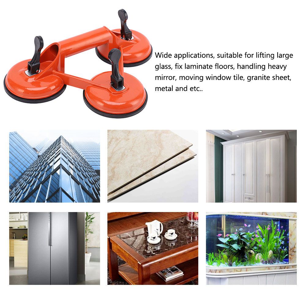 This aluminum alloy 3-claw suction cup is made of rubber and aluminum alloy material, one-piece pressure casting molding, solid and firm, with fine durability. Stone juncture puller, used for the pull or adjustment of various smooth surfaces, a nice helper for stone countertop installation. Wide applications, suitable for lifting large glass, fix laminate floors, handling heavy mirror, moving window tile, granite sheet, metal and etc..