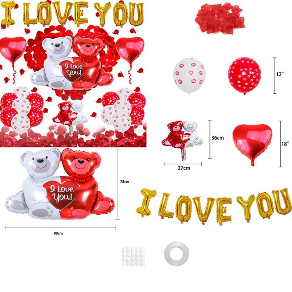 Wide Applications: These teddy bear Valentines balloon set are not only suitable for Valentine's Day, anniversaries and weddings, also can be applied to birthday parties, ceremonies, shopping malls, restaurants, living rooms and other occasions. The romatic Valentine decorations set can be used as background decoration for party. colour: as shown