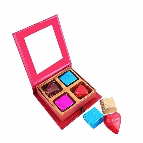 Complementary heart shaped candle.Delicate and entrancing, the scented candles promise to bring warmth to your home and love in the air. Form Factor: Heart Shaped And Square Shaped Chocolates