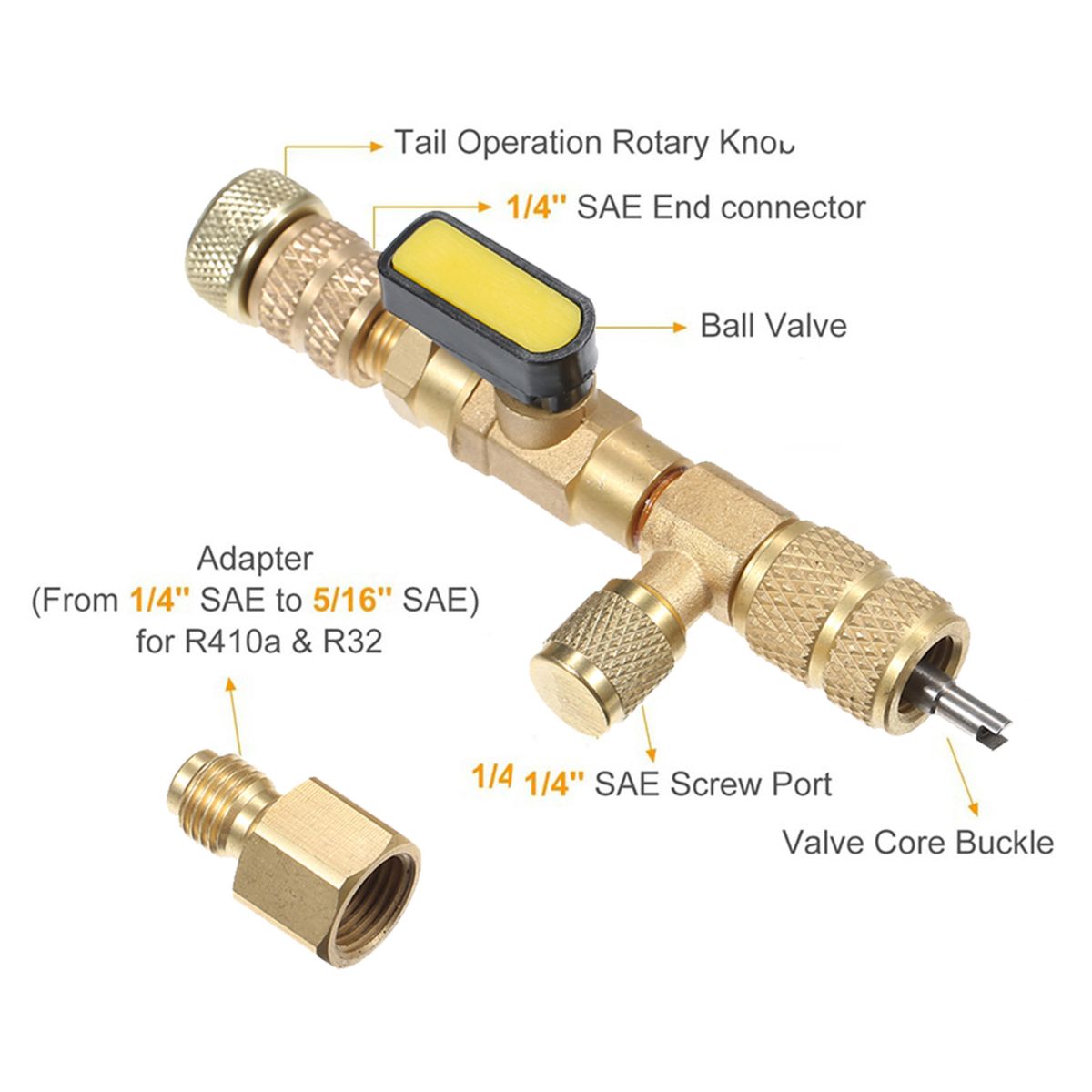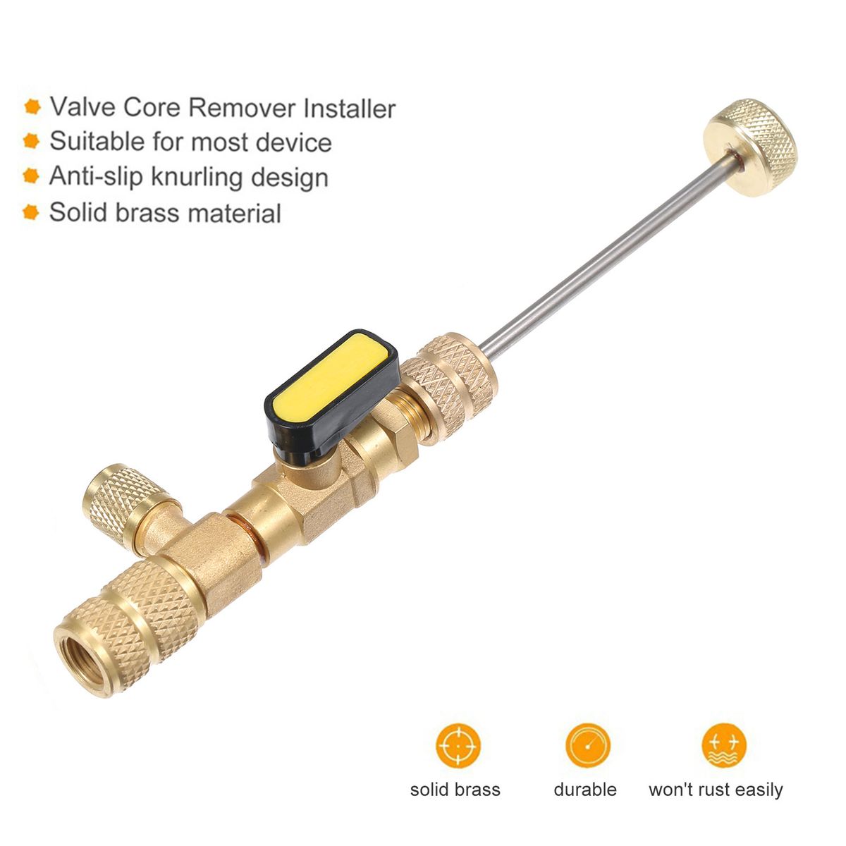 Wide application: Suitable for all refrigeration equipment, dual size( SAE 1/4\'\' amp; 5/16\'\' Port ) design makes the valve core remover installer tool be compatible with R22, R12, R407, R410, R404, R32 A/C air condition system, etc.
