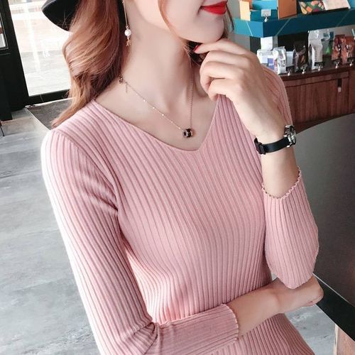 1X Vangull Autumn V Neck Sweater 2019 New Knitted Fashion Women Sweaters Winter Tops For Women Pullover Jumper Slim Pullovers