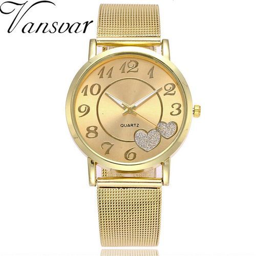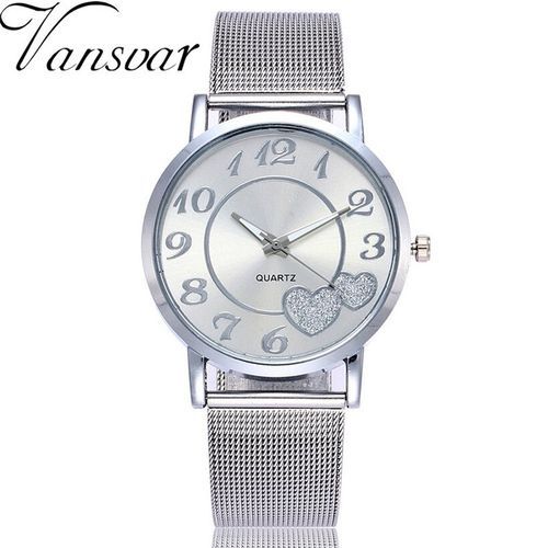1 * Vansvar Brand Silver Gold Mesh Band Love Dial Wristwatch Casual Women Quartz