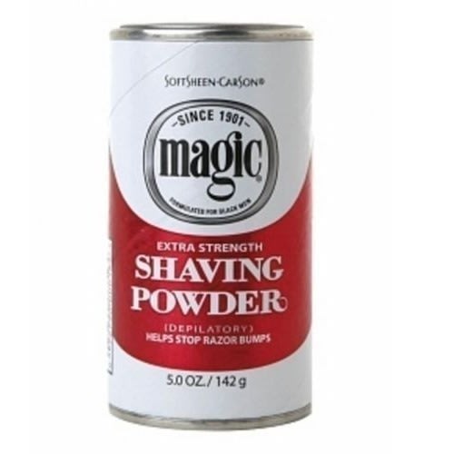 An extra strength shaving powder (depilatory) formulated especially for men to help stop razor bumps. Provide a clean, razorless shave. Extra strength formula for coarse beards. It also for those that experience bumps on their skin after shaving, This is the remedy for stopping bump associated with shaving, try it out today and see the reason it is called magic shaving powder, it truly works like magic on your skin, we recommend you give it a try and you won't regret you did. It also for those that experience bumps on their skin after shaving, This is the remedy for stopping bump associated with shaving, try it out today and see the reason it is called magic shaving powder, it truly works like magic on your skin, we recommend you give it a try and you won't regret you did. An extra strength shaving powder (depilatory) formulated especially for men to help stop razor bumps. Provide a clean, razorless shave. Extra strength formula for coarse beards.