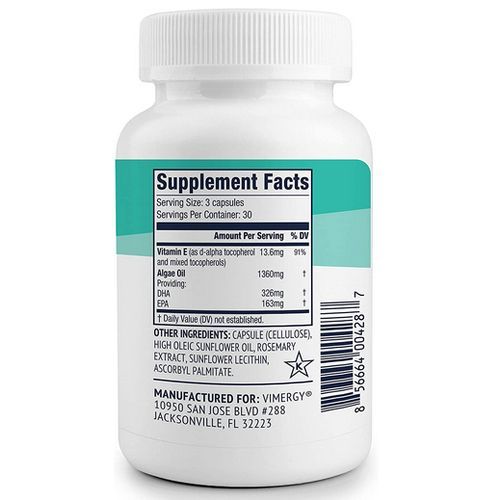 Heard about the importance of getting omega 3 fatty acids? Quality and source matters when it comes to making a choice about which omega 3 supplement to take. Vimergy Vegan EPA DHA is an algae-based supplement (fish-free) that supports brain health, eye health and cardiovascular health. It's also free of carrageenan, citric acid, natural flavors and artificial flavors, which are commonly present in other brands.