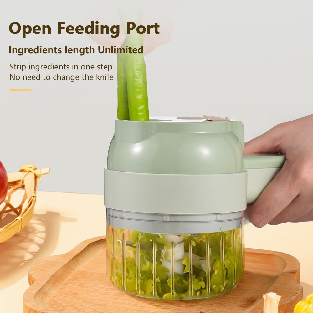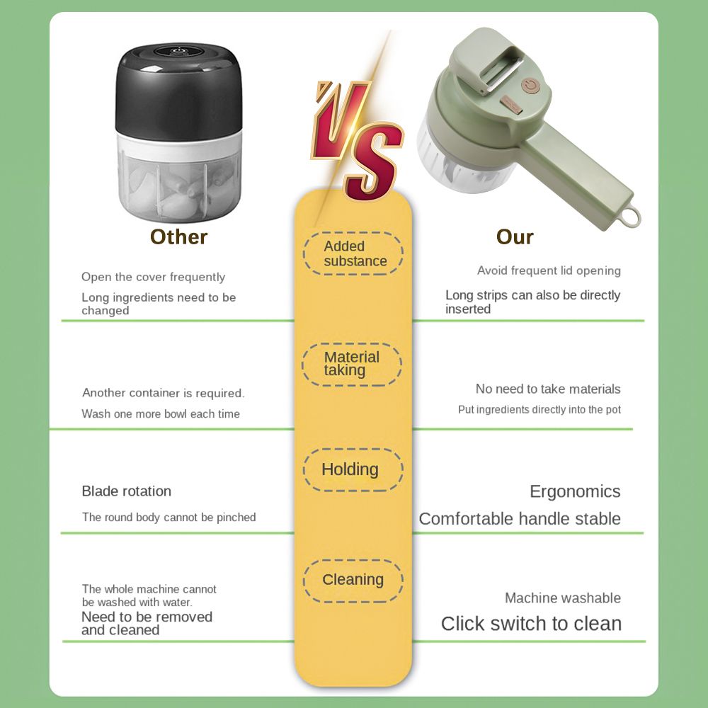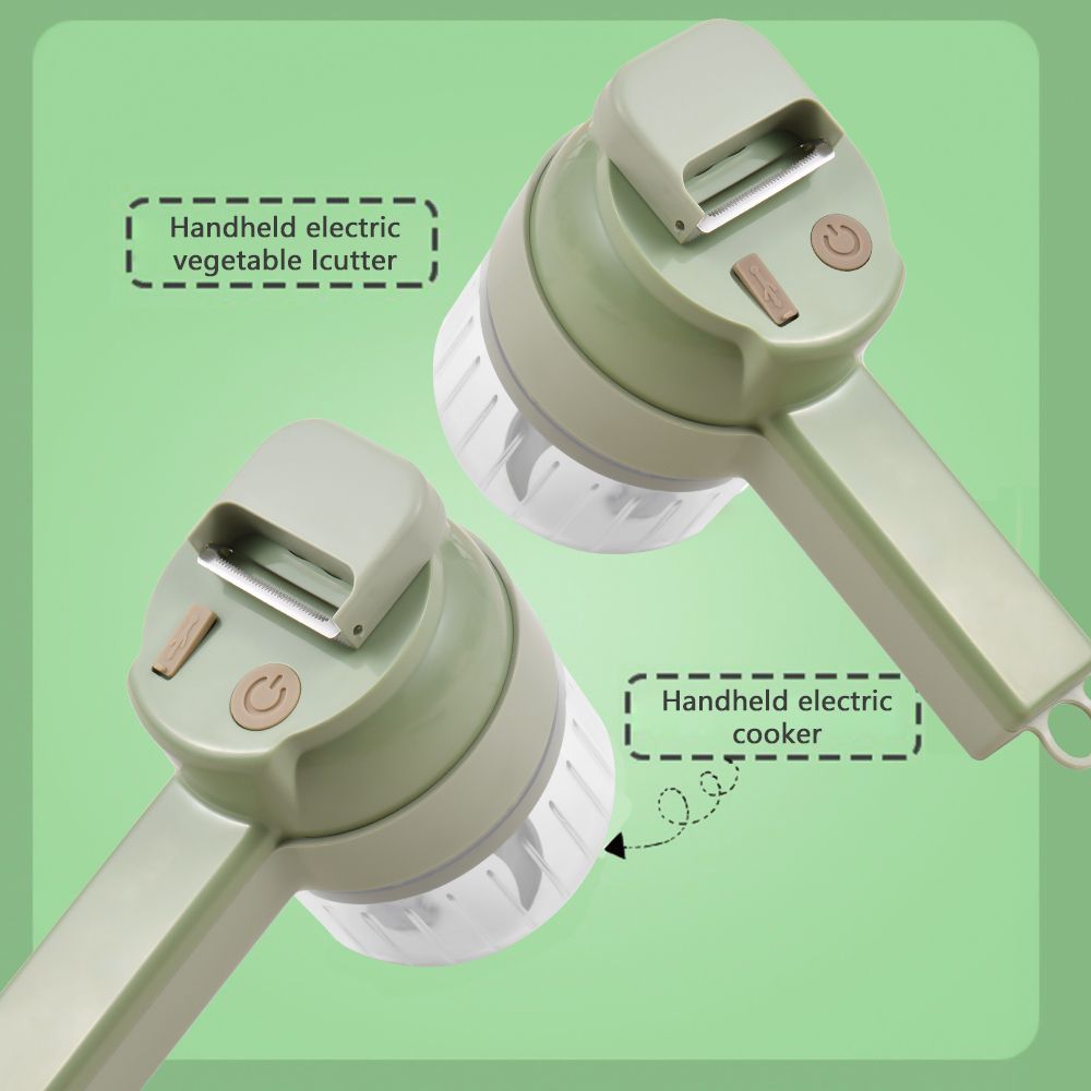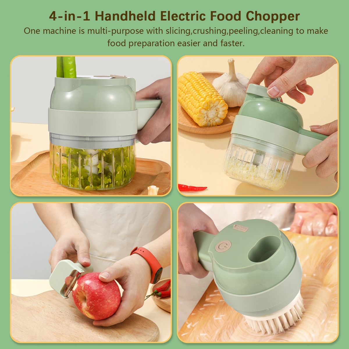 - 【4 in 1 Function】Handheld electric food chopper has 4-in-1 functions: slicing/ crushing/ peeling/ cleaning brush. Easily prepare various ingredients to cook for saving time and effort.