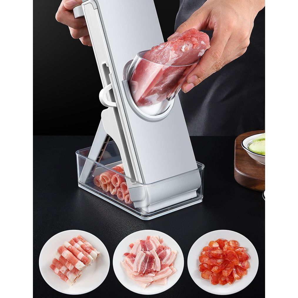 The multifunctional slicer can meet various food preparation needs, and can process freeze meat, cucumber, lettuce, zucchini, lemon, sausage, potato, carrot, etc.