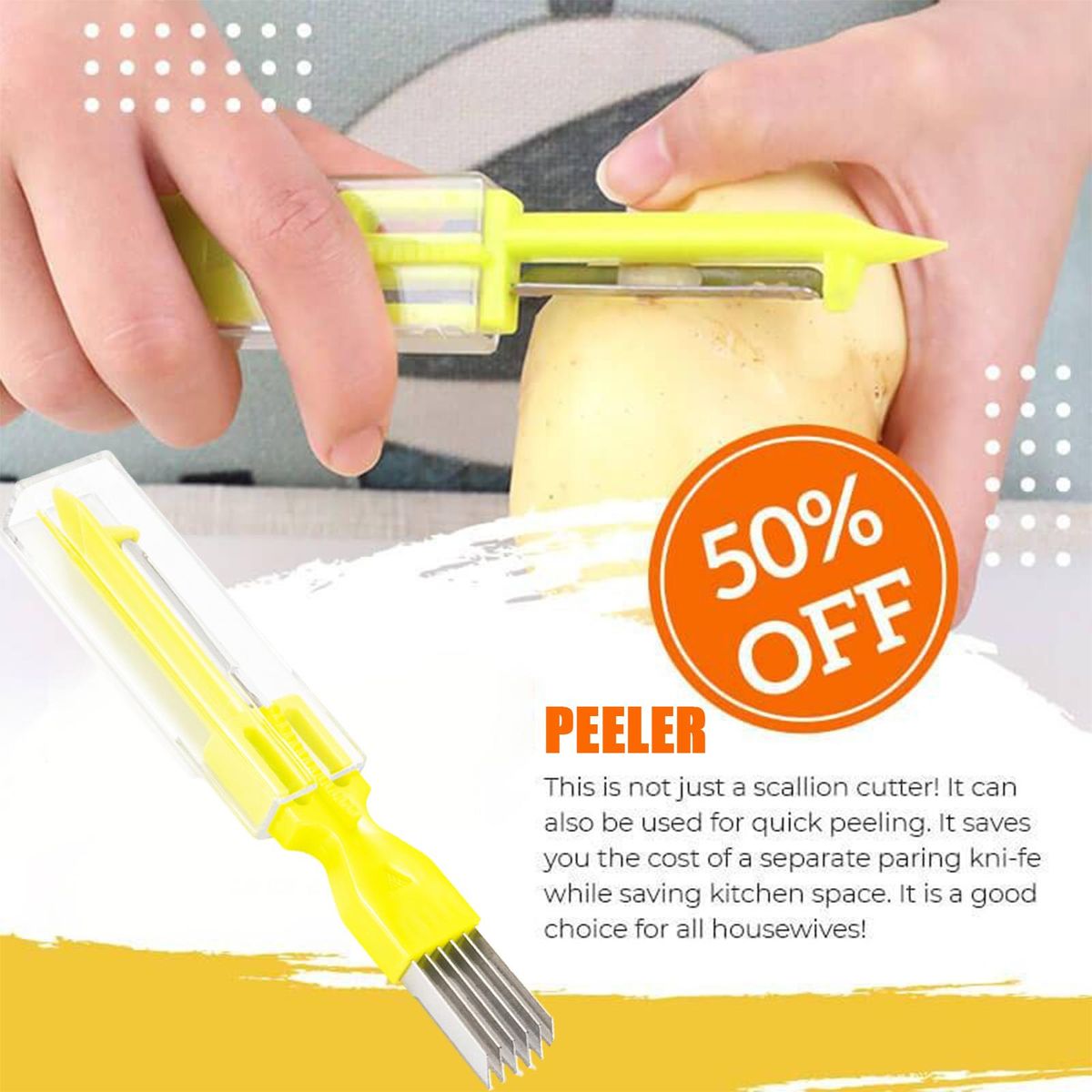 Vegetable cutter and peeler stainless steel blades, sharpen, simple, fast, kitchen tool scallion slicer.