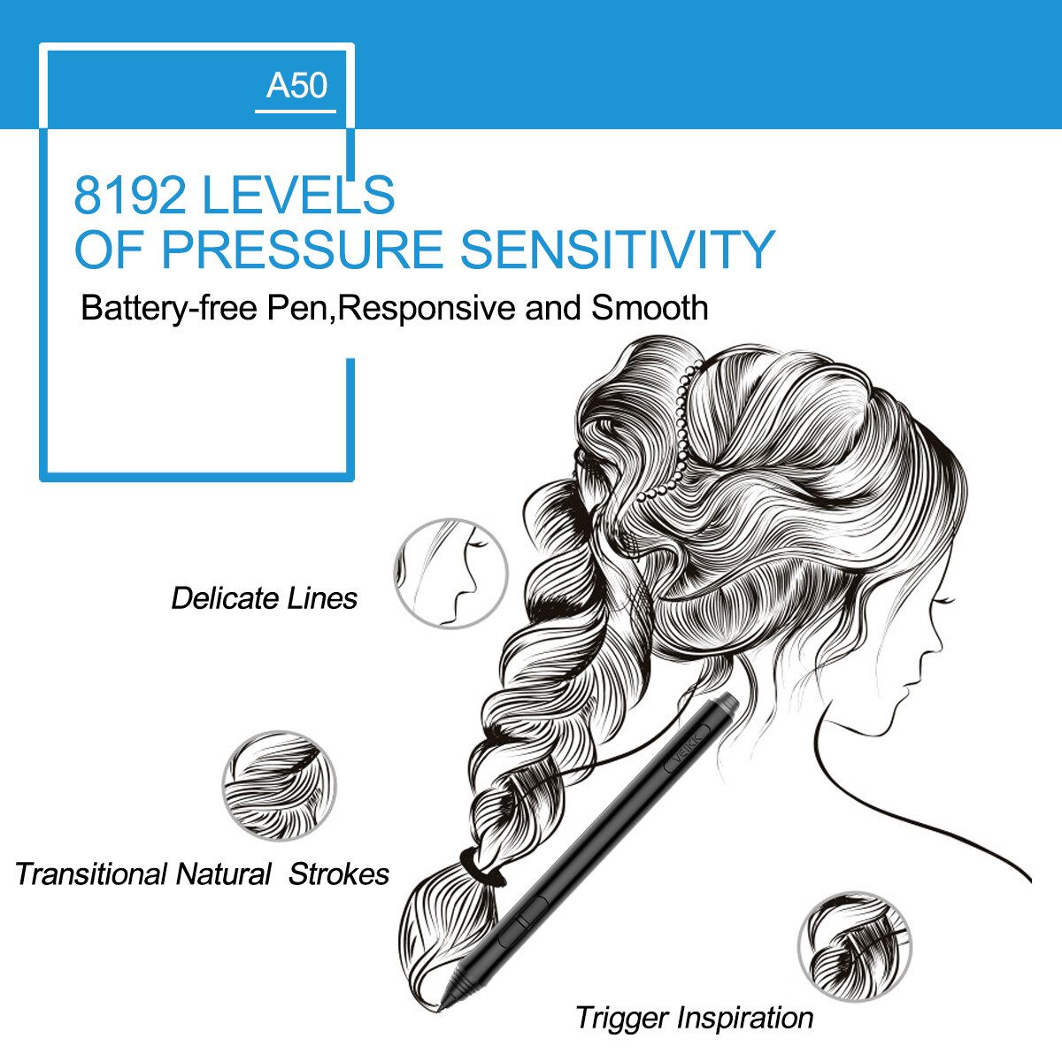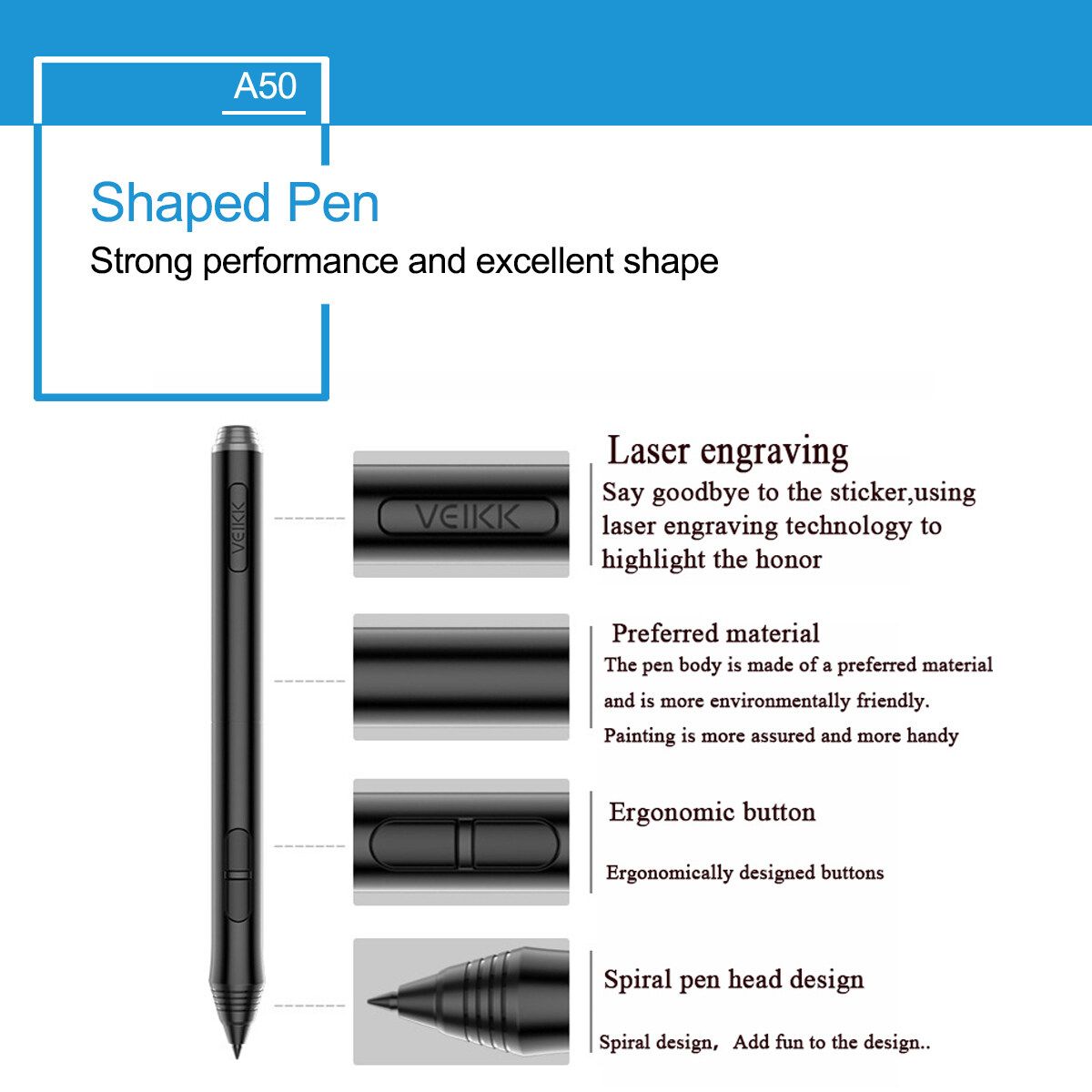 VEIKK is a high-tech enterprise which has its own RD team and production line, specialized in graphic tablets and pen displays.VEIKK A50 is one of our best selling digital pen display which is very convenient to carry on and suitable as a gift for kids or adults who like drawing.