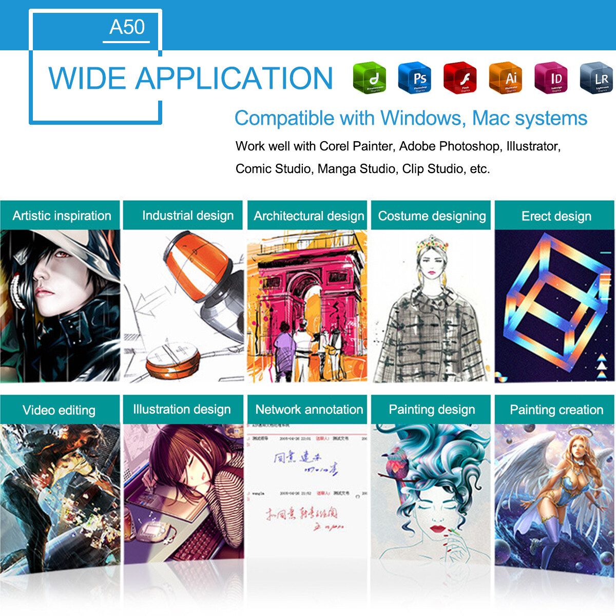 For Windows system, for systems. Work well with Corel Painter, PS, Illustrator, Comic Studio, Manga Studio, Clip Studio, etc. .