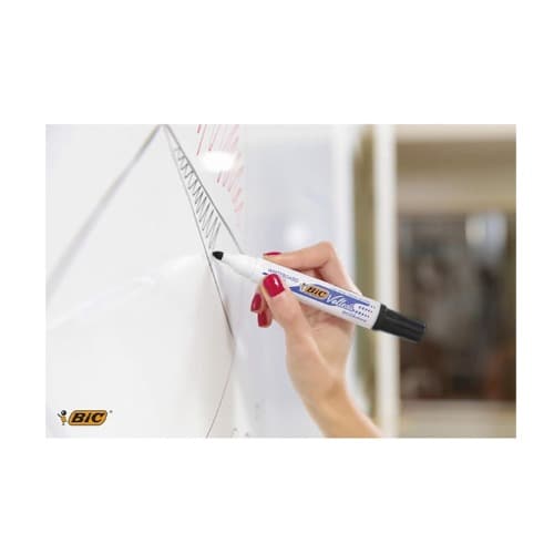 High-quality bullet point, dry erasable whiteboard marker. Will last up to 96hr without cap. Nib 4mm, writing width 2mm. Low odour, xylene free, organic pigments, alcohol based ink. Waterproof and fade resistant. Available in boxes of 12.Alcohol based dry erase marker. It has no noise and scratch when writing, and can easily wipes off with dry cloth.