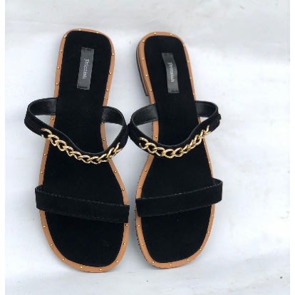 Buy Velvet Black Double Strap Chain Flat Slippers in Nigeria
