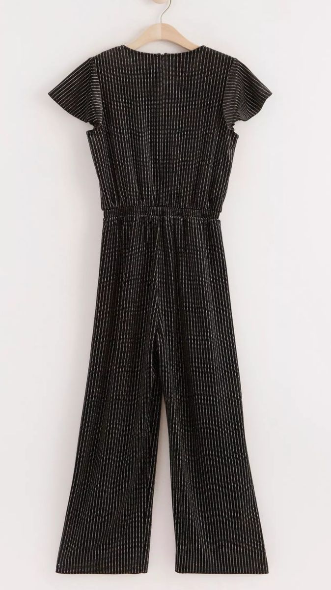 jumpsuit with shortsleeves, wide leg and an allover pattern in silver colour glitter, this is a must have in your girl's wardrobe