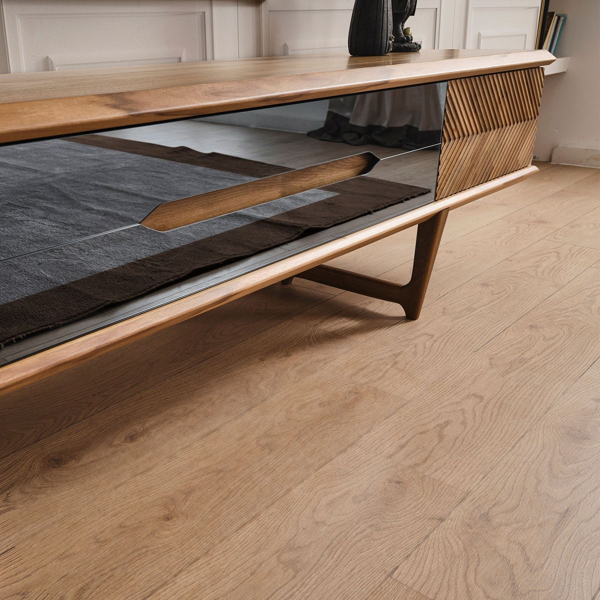 Introducing the Wooden TV Unit from Vento Furniture - a perfect blend of style and functionality. Crafted with the finest quality wood, this TV unit is a durable and long-lasting addition to your living room. The sleek design and beautiful finish make it a standout piece, sure to elevate the look of any space.