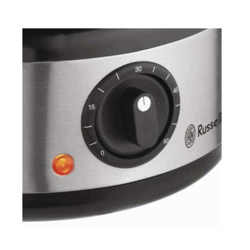 It boils egg in steam generated by stainless steel heater in 220V/400W power with 25ml water.