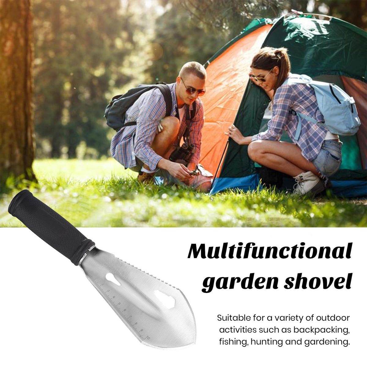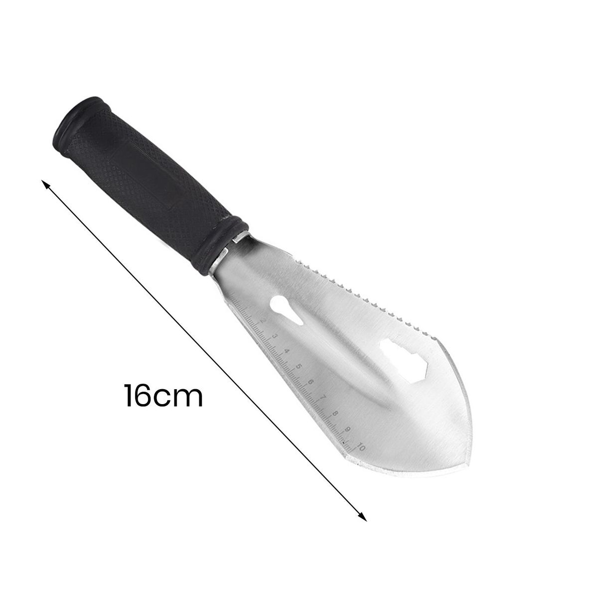 Made of stainless steel and heat-treated for strength, this compact folding shovel allows for sawing, cutting, hammering, trenching, and digging making it a true all-in-one tool. whether you're backpacking, fishing, hunting, or simply tending to your garden, our garden shovel is the perfect companion. .