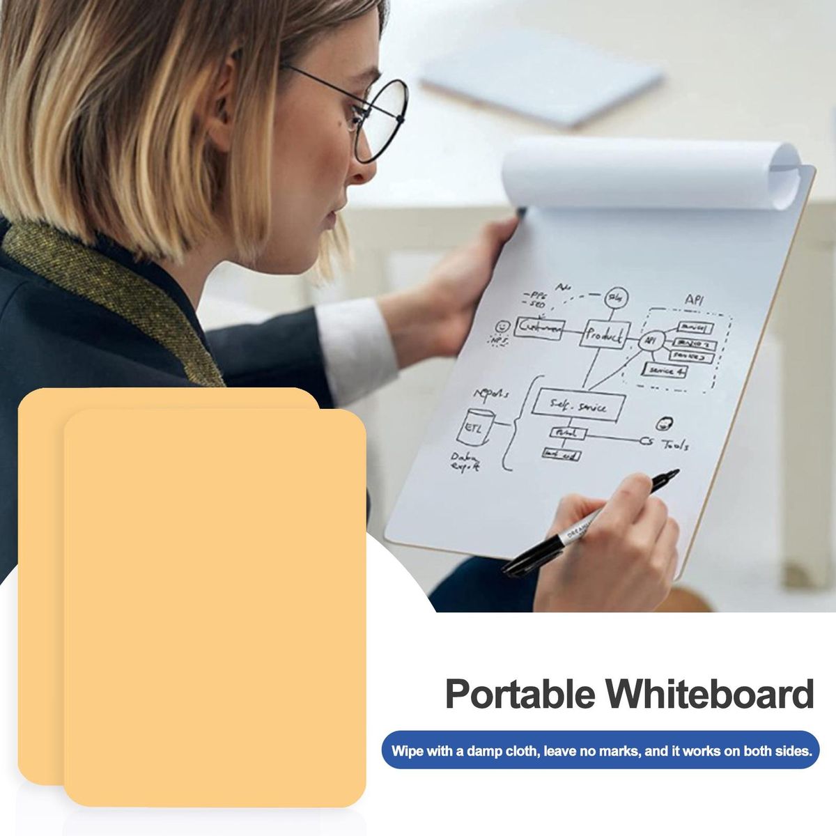 Our portable whiteboard, the perfect tool for all your writing and advertising needs. this versatile whiteboard is designed to be easily wiped clean with a damp cloth, leaving no marks behind. its reversible feature allows you to maximize your writing space, making it perfect for brainstorming sessions or presentations.