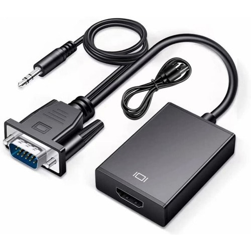 "VGA to HDMI Converter Adapter This product is the New VGA Audio USB conversion cable, with a compact portable design, convert through standard definition VGA analog signal resource and input audio into output HDMI. It is applied to the desktop computer, laptop, DVD, Set TOP Box, player, and so on VGA signal resource input.
