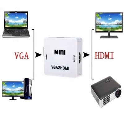 If you want to view your PC desktop or applications on your HDTV, but lack the necessary ports, this converter is what you need. Simply plug in a standard VGA video cable into the input port of the converter along with a regular 3.5 mm audio cable , and then connect an HDMI cable from the converter to your TV. Enjoy a practical and simple addition to your AV system with this device, which is easily concealable yet capable of clear, high-definition HDMI audio and video.
