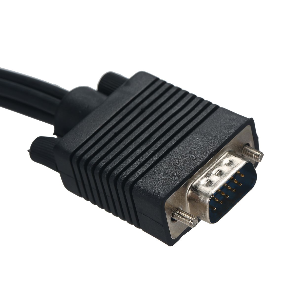 With 1-standard D-Sub VGA input at one end, 1 S-Video mini 4-pin connector and 3-RCA jack at the other end.