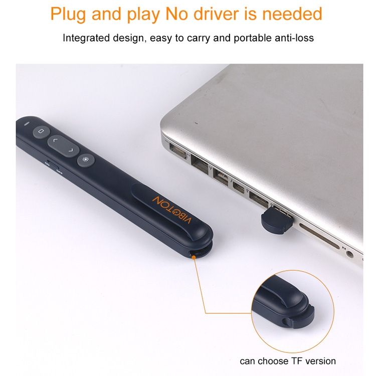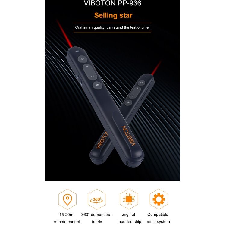 VIBOTON PP936 3R 2.4GHz Wireless Transmission Multimedia Presenter with 650mm Red Light Laser Pointer & USB Receiver for Projector / PC / Laptop