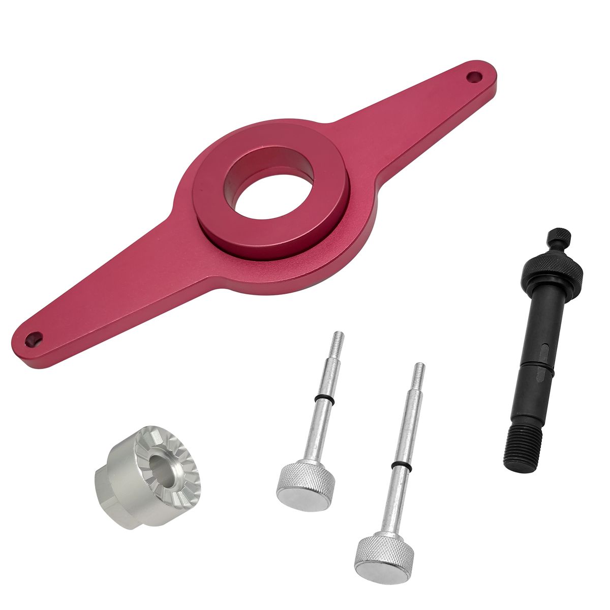 Includes: T10531/1 ndash; Counterhold tool, T10531/2 ndash; Tensioning pins, T10531/3 ndash; Turning over tool, T10531/4 ndash; Knurled nut.