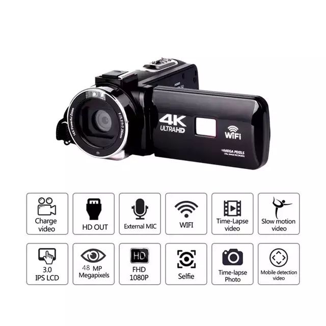 Package List: 1 * Digital Video Camera 1 * Camera Battery 1 * Lens Cap 1 * USB Cable 1 * Camera Bag 1 * Remote Control 1 * HD Cable 1 * Camera User Manual 1 * Microphone 1 * Wide-angle Lens 1 * Fill LightHigh Quality & Leading Technology: Video camcorder with 4K 2688X1520/20fps (UHD) video resolution, 48MP (max) picture pixel, (supports 270°rotation), 18X digital zoom, Record while charging. The pictures and videos are crisp and clear; You can flip, turn and swivel. Film yourself while you watch on-screen to monitor the shots. It easily mounts on a tripod, so you can record every precious moment in your daily life with this camcorder.