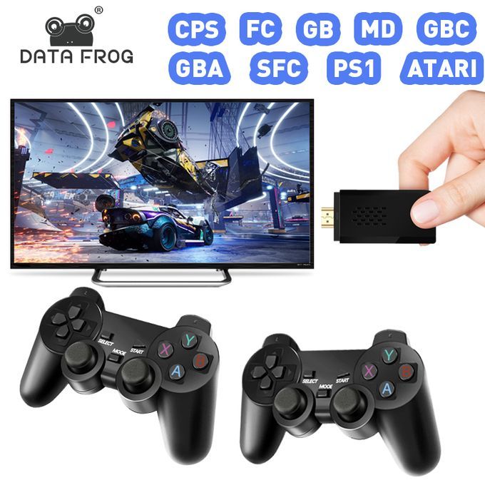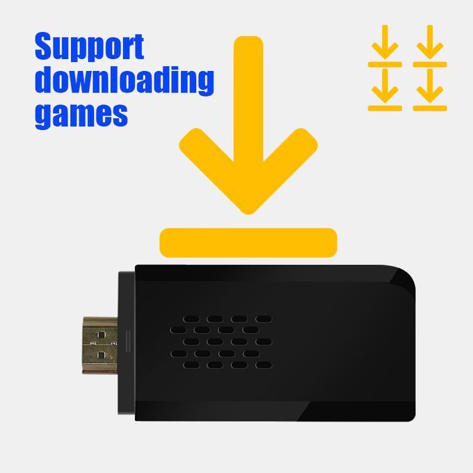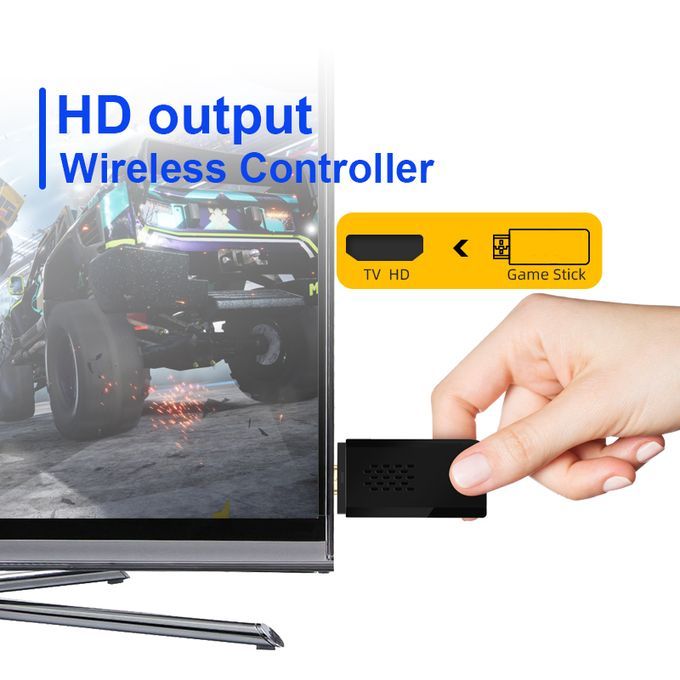 4K HDMI-compatible Video Game Stick Console(денди игровая приставка)The portable mini game machine has a light and compact body.Plug and play, does not take up too much space, and is easy to carry, suitable for travel and home use.This video game console is suitable for ultra-high-definition TV/computer/monitor/projector, supports HDMI-compatible connection , has 1080P HD image quality, and can enjoy lively and interesting video games on the big screen.Support 9 Game FormatsWith upgraded GB2 CPU chip, the console is built-in more than 9 Emulators, compatible for MAME, PS1, GB, GBA, GBC, MD, SFC, FC and ATARI format games, which you can download and save at its Memory Card.Upgraded Smart Game U DiskWireless TV game console with more than 10000 kinds of rich games is installed, 9 emulators supporting multiple games are installed, and a 32GB TF card is attached. Use upgraded game chips to support 8-bit, 16-bit, 32-bit, 64-bit, 128-bit and other emulators. It perfectly meets your needs for image quality and game fluency.2.4GHz wireless controllerEquipped with two 2.4Ghz wireless game controllers. Support up to 4 players at the same time, you can remotely control and enjoy the game on the sofa with your family or friends.Upgraded VersionThe latest wireless TV game console, with 64G Memory Card, built-in more than 10000 Games, searchable, collectible, archiveable, and support you to download your favorite games.Package Include:1*Controller receiver1*TV game stick2*controller