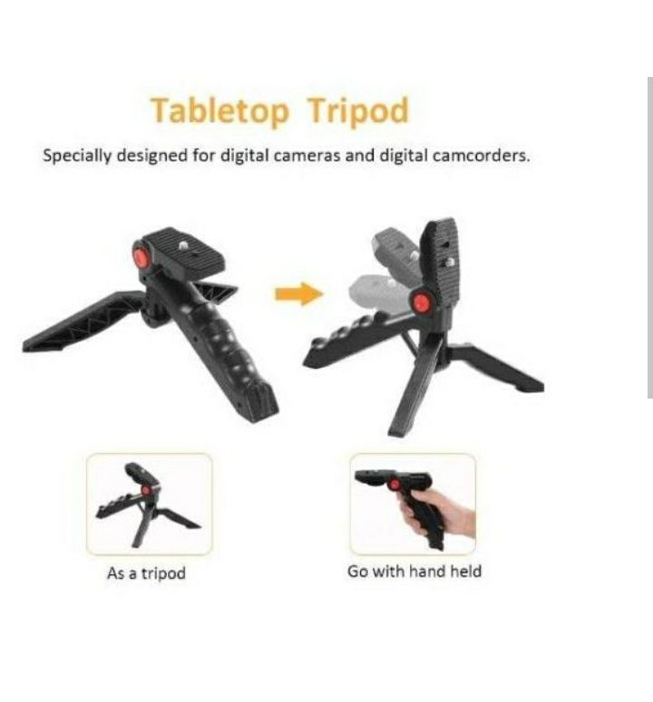 Dual Use Tripod Handle: Designed with foldable plate, the tripod is dual applicable for hand gripping and table settling, ergonomic designed shape makes gripping more comfortable.