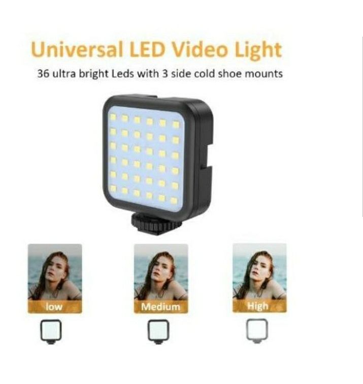 6500K LED Light: 49pcs lamp bead provides the light 6500K color temperature and 5W output , powered with 2pcs AA batteries(not included), for brighter and uniform video lighting.