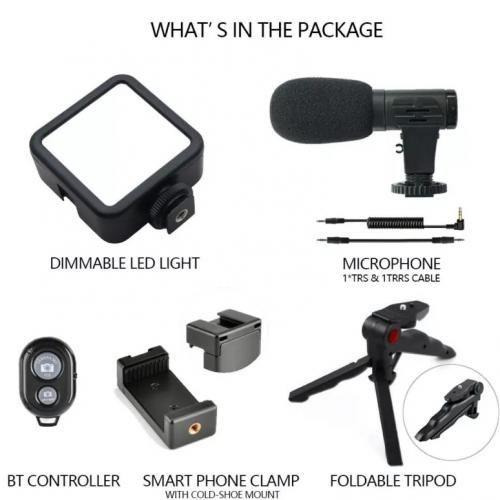 Vlogging kit for all kinds of phones and camera is a kit designed for smartphone camera video recording with 3.5mm TRRS plug microphone, universal for Vlog making, interview, live streaming, online makeup, video chatting and more.