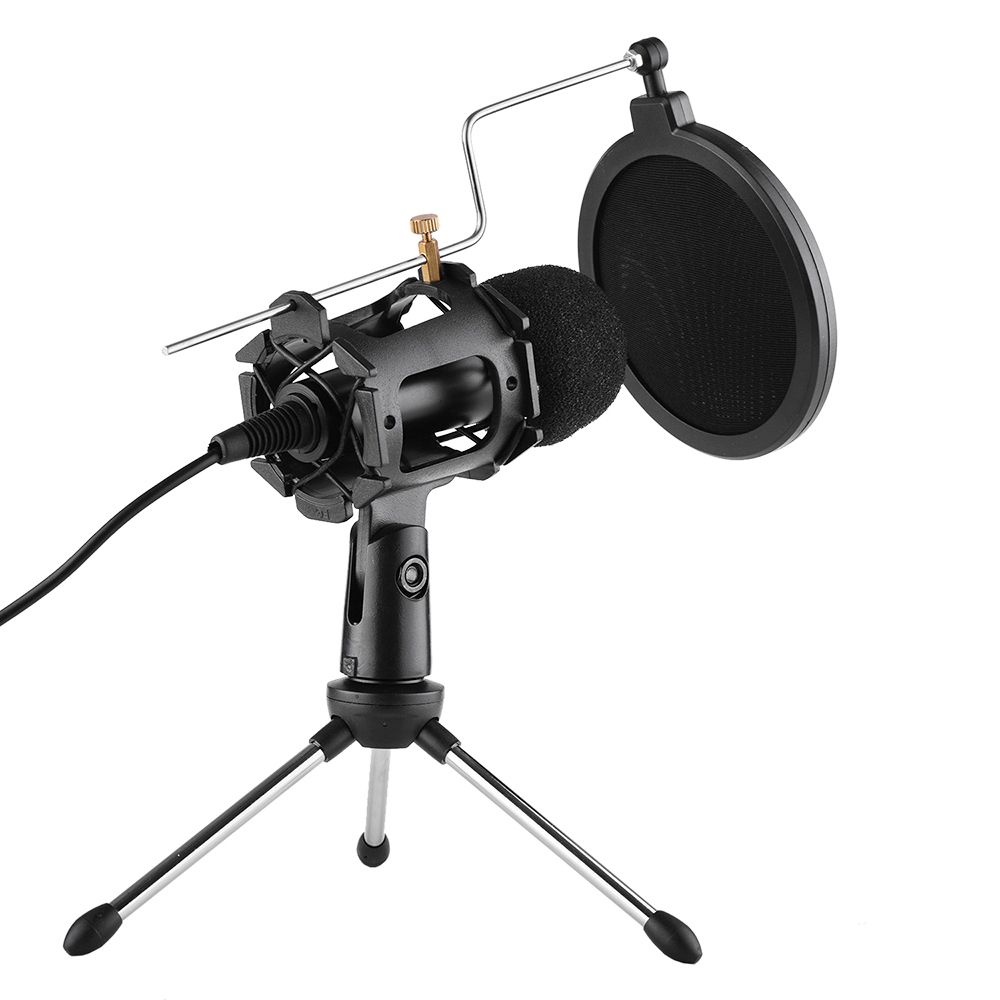 Microphone with Table Tripod: This is a table microphone kit which includes mini microphone, tripod, shock mount, pop filter, windshield and adapter cable.