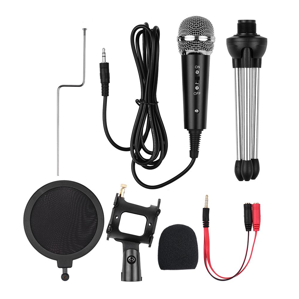 Features:- 【Microphone with Table Tripod】This is a table microphone kit which includes mini microphone, tripod, shock mount, pop filter, windshield and adapter cable.