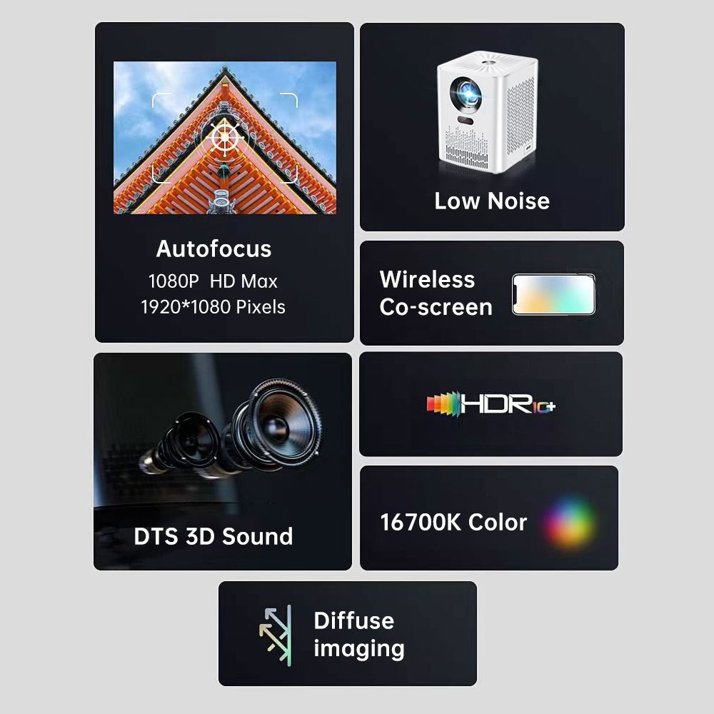 Features:◆ Outstanding Performance: Support 1080P HD Playback, LCD technology with D65 projection color temperature. The projected light enters the eyes through diffuse reflection, which is not easy to fatigue the eyes and protects the eyesight of children and the elderly.