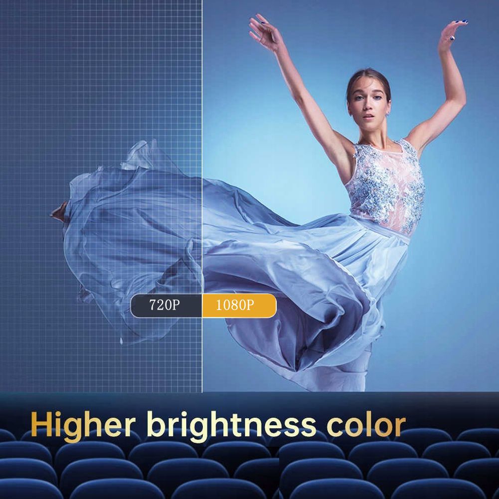 HD Projector using advanced LCD 4.1 projection technology and LED light source, which makes the projector 40% brighter than other 1080P projectors, 300ANSI LUMENS, no eye damage Fatigue, give you excellent viewing experience.