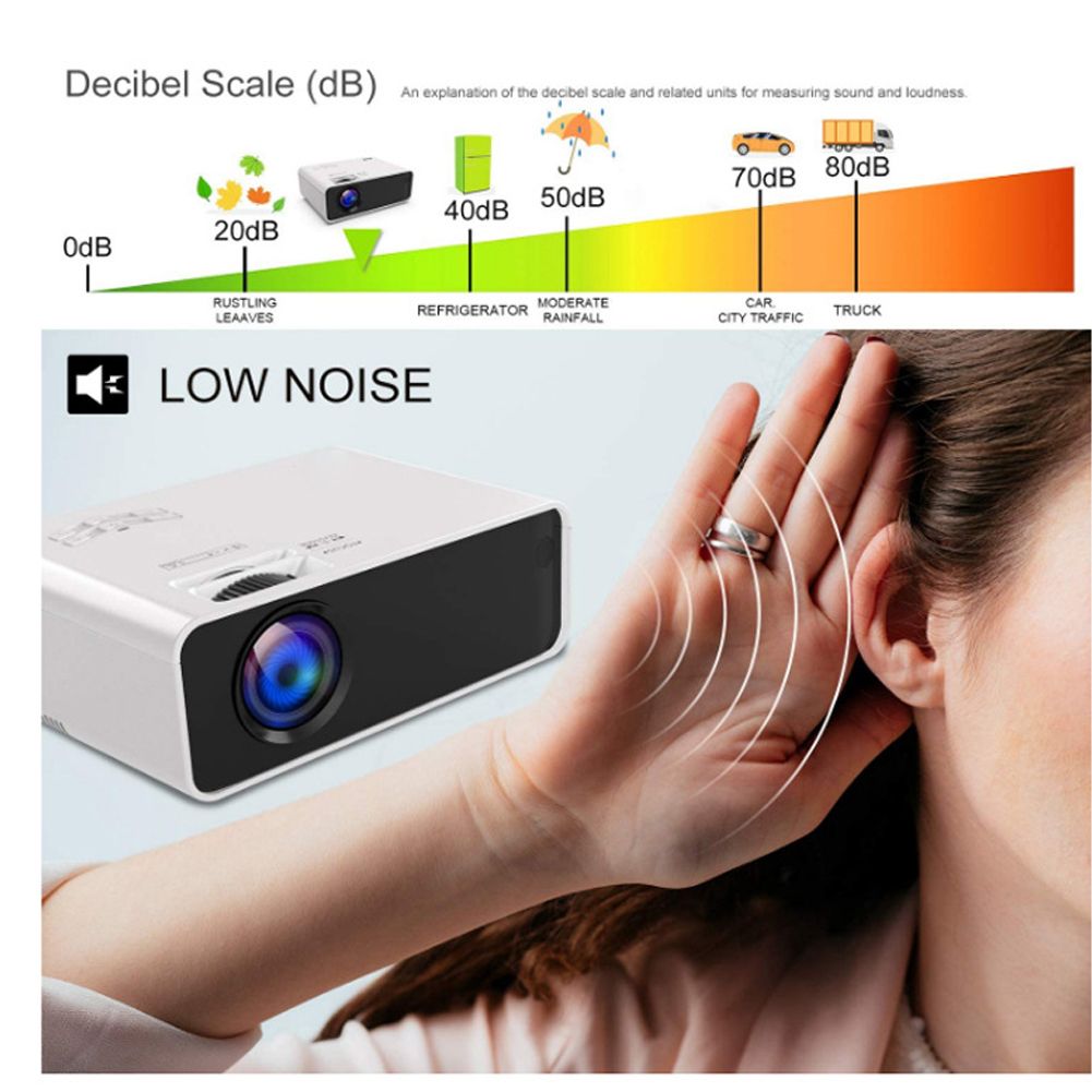 Equipped with an advanced built-in speaker system, the mini projector provides excellent sound quality, bringing you tinnitus and feeling all-round sound. Let you enjoy a cinema-like atmosphere at home.